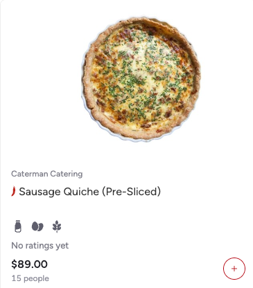 - Dish photo and catering provider name (e.g.,