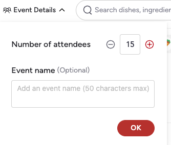 - Number of attendees — Use the +/- buttons to set your headcount. This helps calculate per-person cost later.