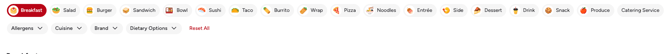 Breakfast · Salad · Burger · Sandwich · Bowl · Sushi · Taco · Burrito · Wrap · Pizza · Noodles · Entrée · Side · Dessert · Drink · Snack · Produce · Dairy & Eggs · Nursery & Flowers · Catering Service