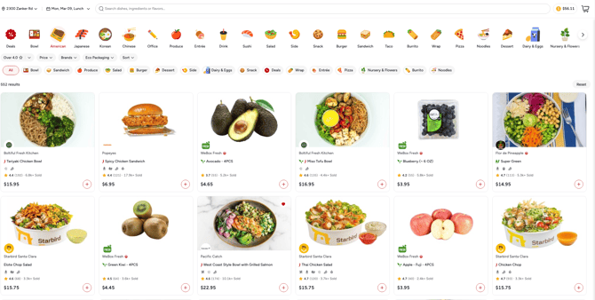 - Browse the menu: Use tabs for categories (e.g., New This Week, Deals, Salads), search by keywords (e.g., dish name, ingredient, brand), or apply filters (e.g., price range, cuisine, dietary restrictions like gluten-free).