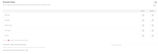 - Auto-Order: Enable in profile for recurring setups (e.g., weekly lunches from favorites).
